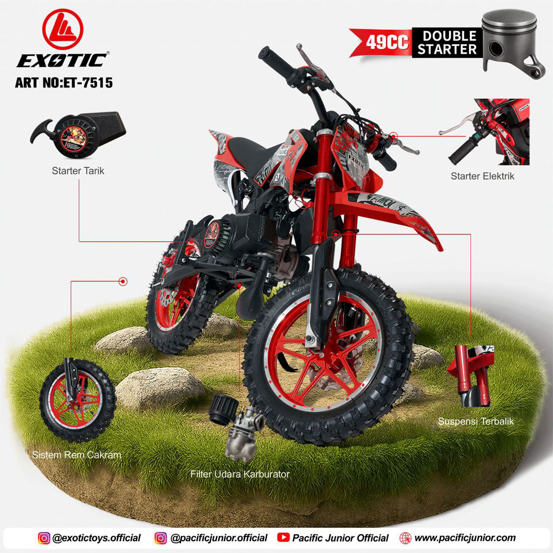 Motor trail mini bermesin 2 tak untuk anak dengan desain yang keren dan gagah.
