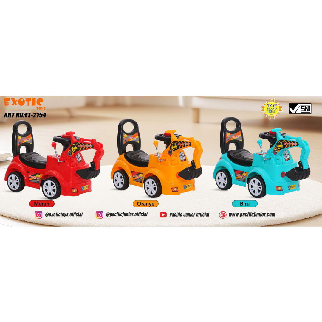 Mainan anak serba guna dengan desain yang keren dan unik. Mainan ini berupa excavator yang bisa diduduki.