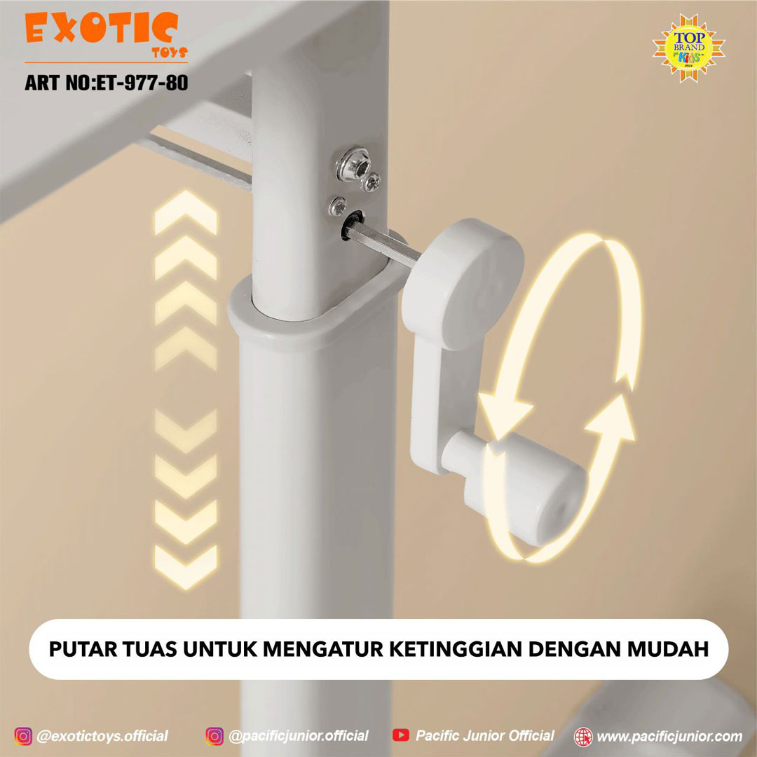 Meja belajar anak premium dengan desain menarik dan dilengkapi beragam fitur yang berguna.